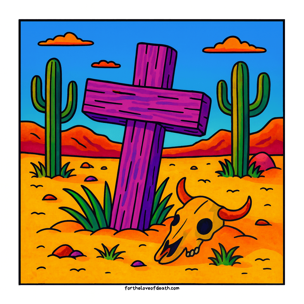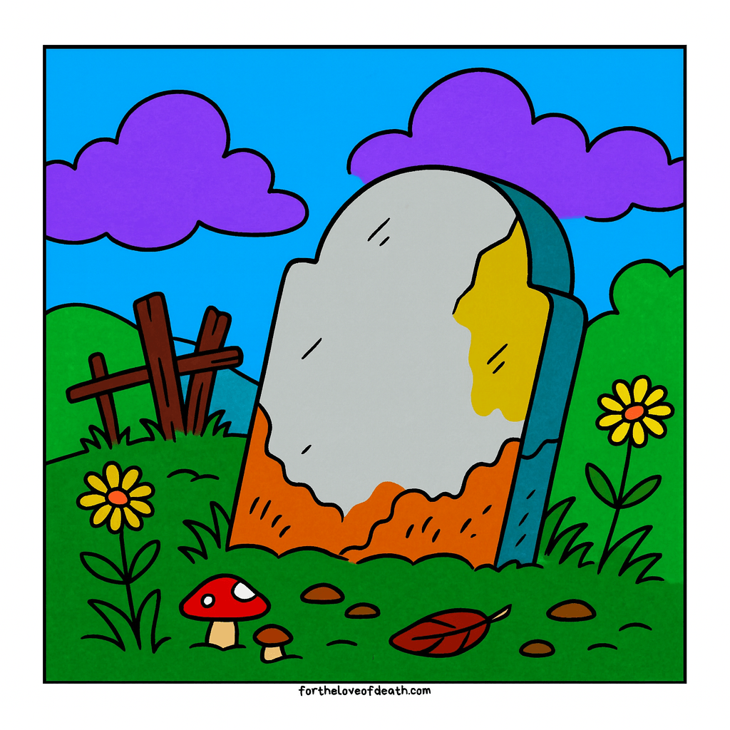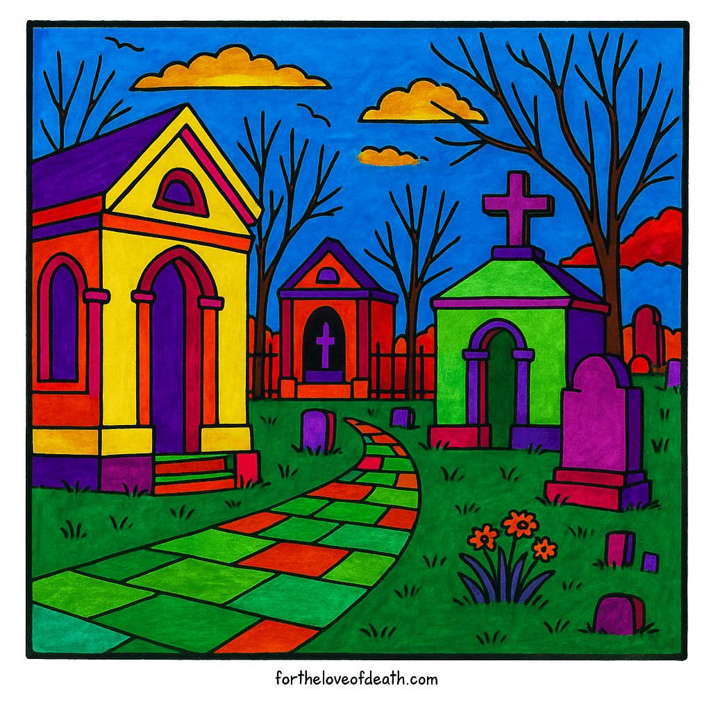 Welcome to the For the Love of Death Gallery, where dark humor meets creative expression. This is our showcase of featured art, colored pages, and exclusive designs inspired by cemeteries, funeral culture, gothic architecture, and the morbidly funny side of life.