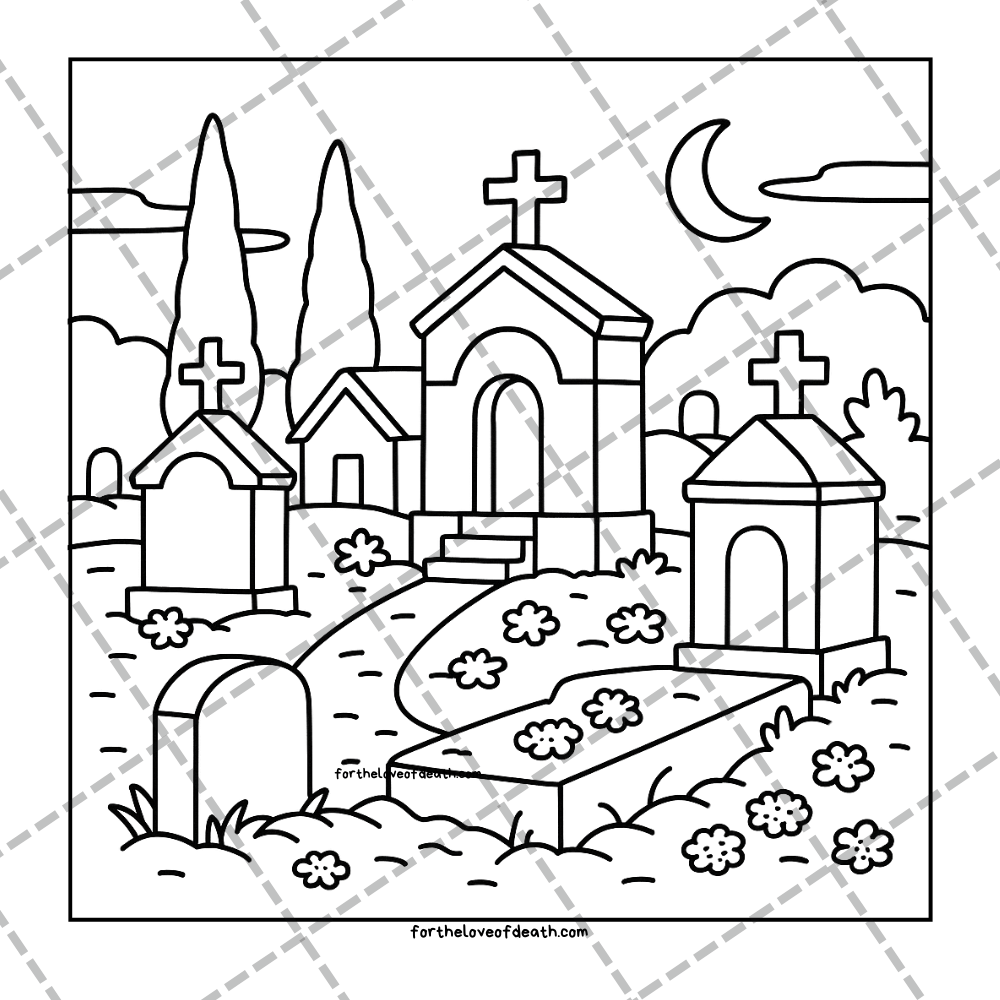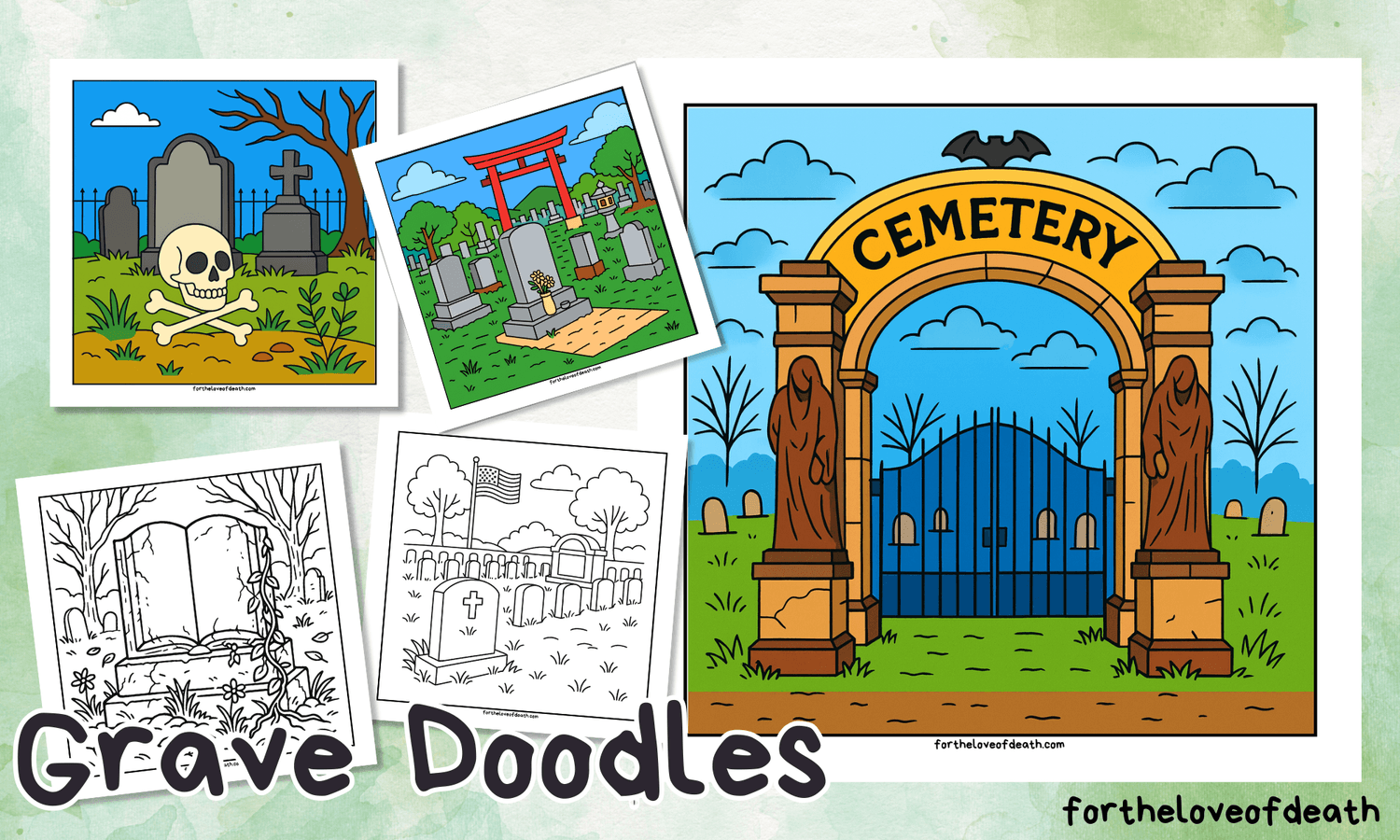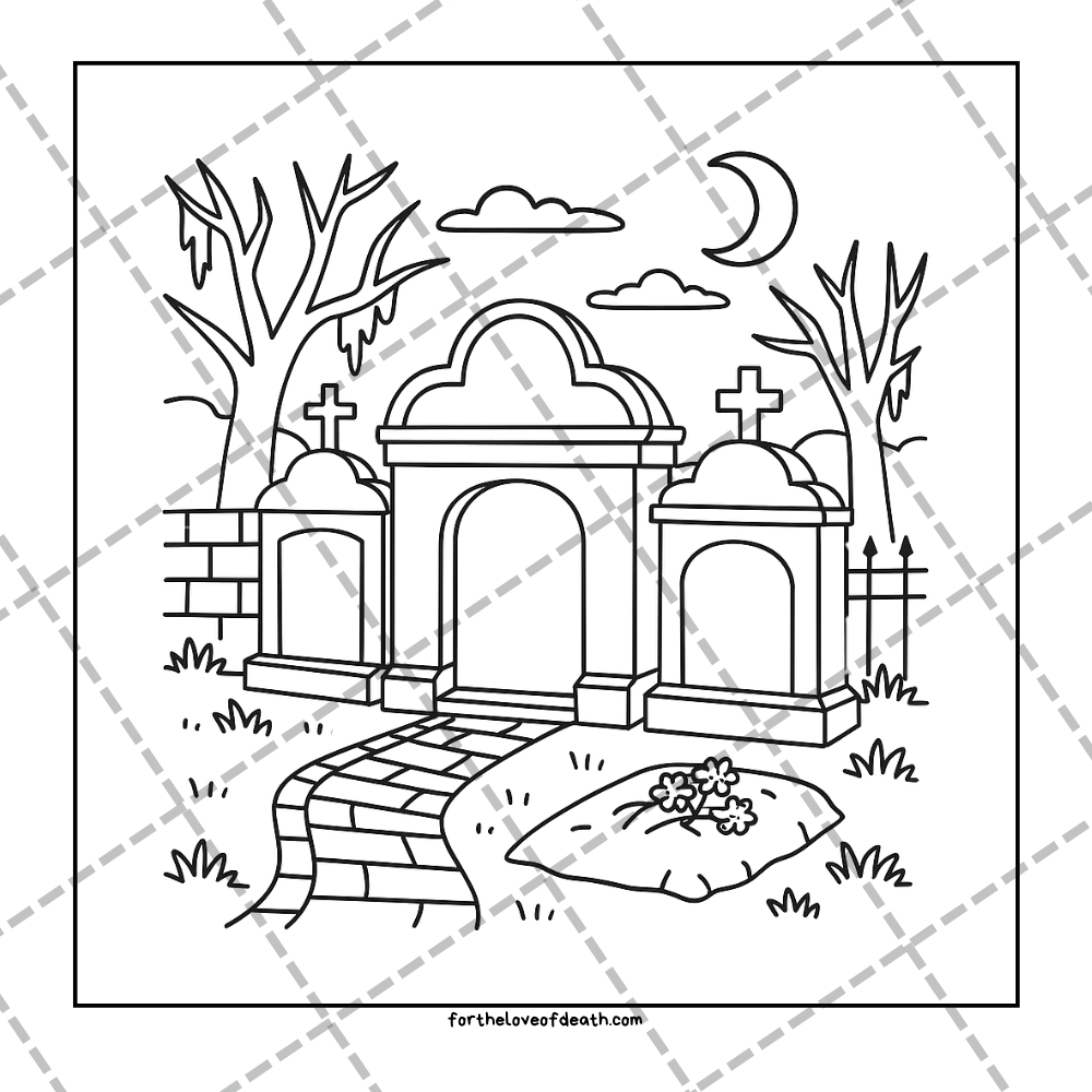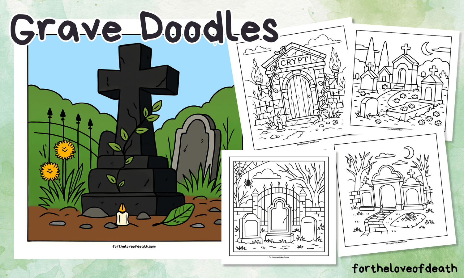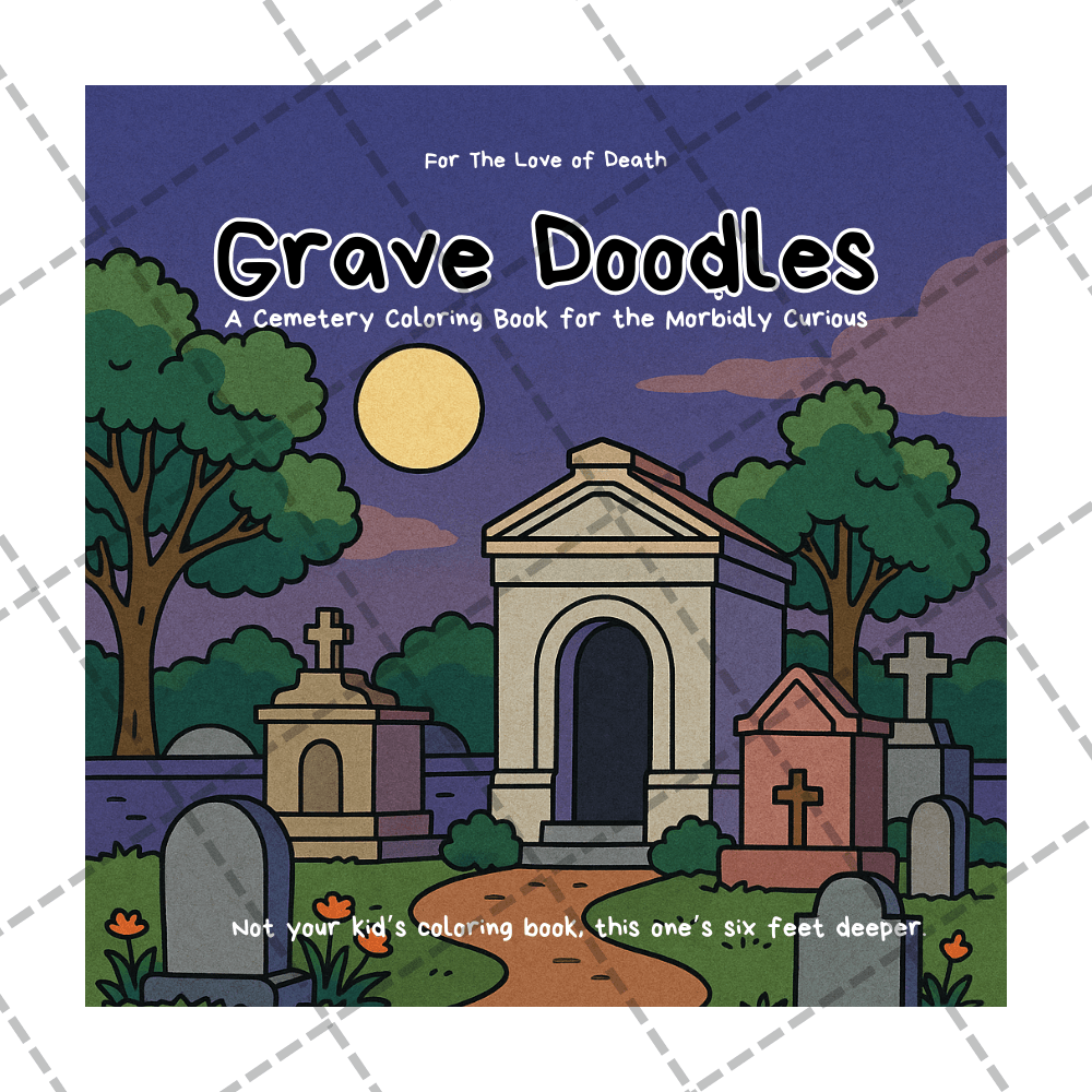 Step into the graveyard and bring it to life with your colors. Grave Doodles is packed with 50 eerie and imaginative coloring pages, each one featuring creepy-cute cemeteries, gravestones, and hauntingly fun designs.