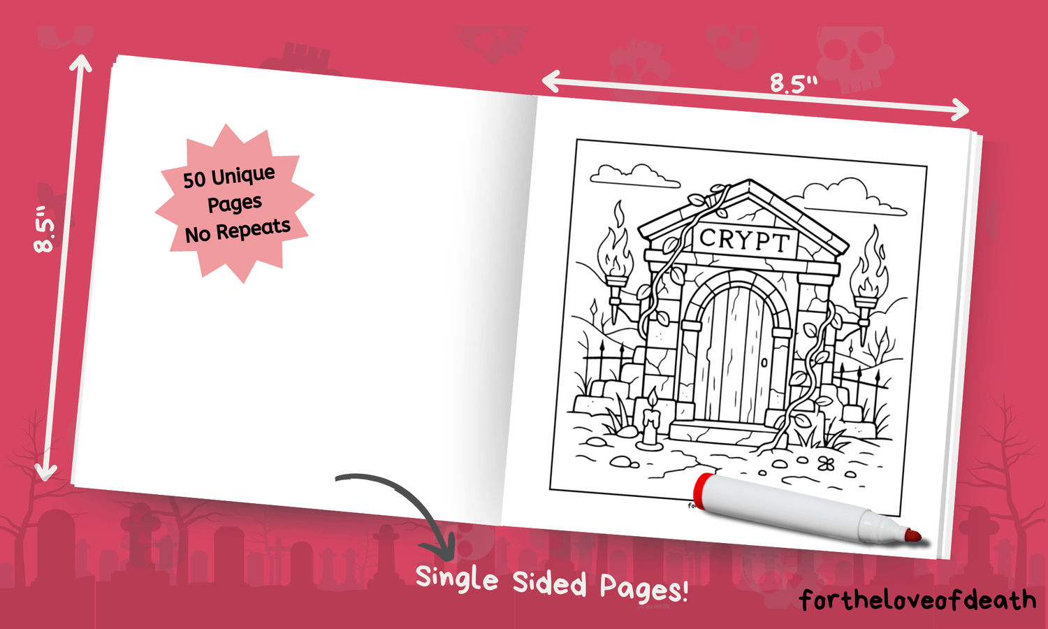 Perfect for fans of dark humor, gothic vibes, or anyone who finds cemeteries oddly relaxing, this book gives you a chance to unwind in the spookiest way possible.
