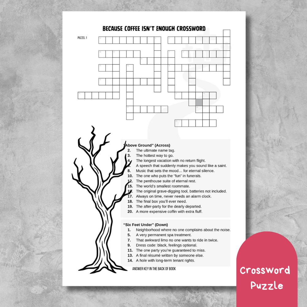 Crossword Puzzle & Word Searches – funeral-themed brain teasers for slow days at the chapel.