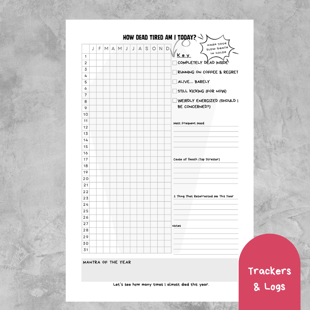 Sleep & Tired Trackers – log your exhaustion one square at a time (spoiler: it’s all of them).